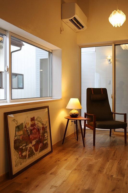 窓からの光が十分に届くスペースにはゆったりくつろげる一人掛けをセッティング。