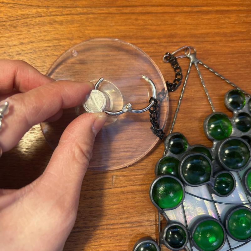 吸盤で窓に貼り付けるか、