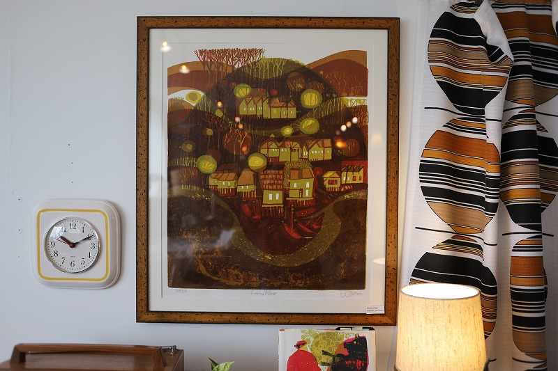 イエローのラインがアクセントな陶器製掛時計を一緒にコーディネート。