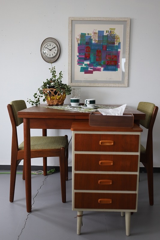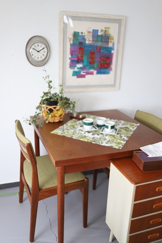 エクステンション付きのデンマーク製ダイニングテーブルは、