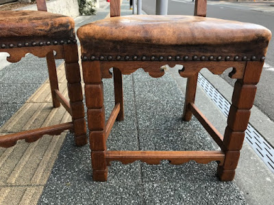 脚の装飾と鋲がデザインのアクセント!なチェアです。