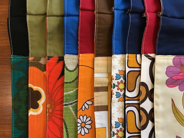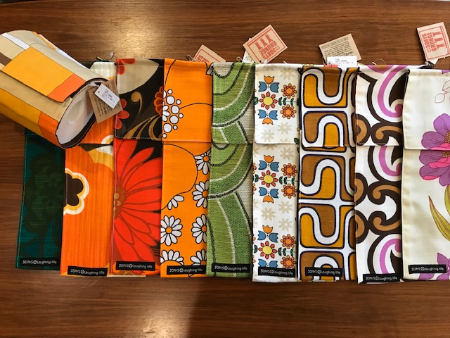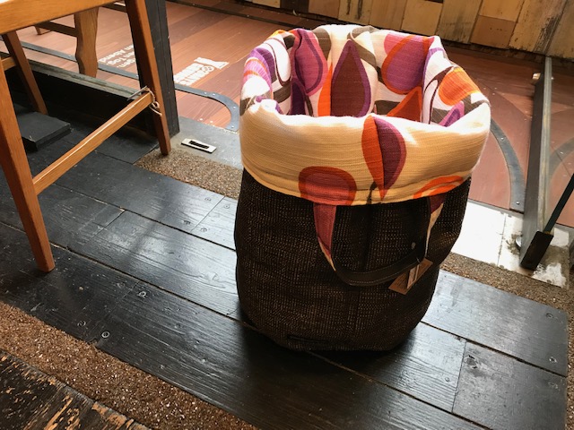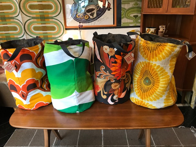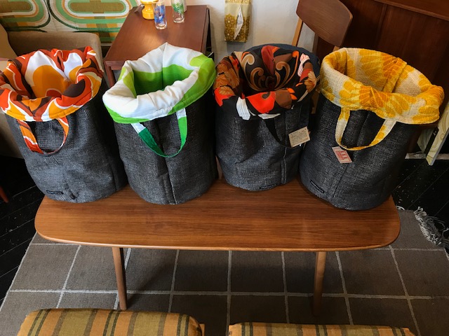 グランジで取り扱っているドイツのビンテージファブリック。レトロなファブリックを使用して、オリジナルのストレージbagが出来上がりました!!