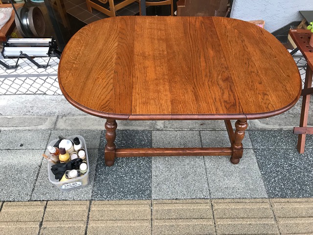 今日も雨ではございますが、気を付けながらの家具の入替中。 こちらも天板のサイズが変化するタイプのコーヒーテーブル。