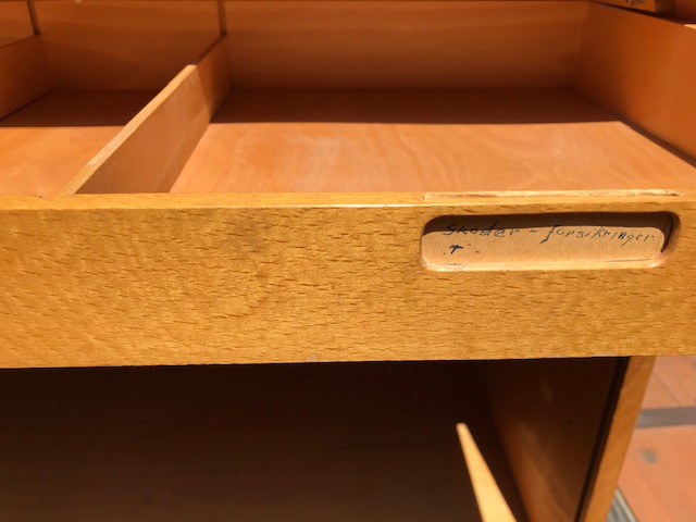 蛇腹の扉がポイント!な、中くらいサイズのキャビネットが登場~。