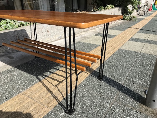 無骨なガッシリとした天板に、黒くペイントされたアイアンの脚。