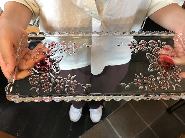 明日もガラス製のスナックトレイやプレートなど、