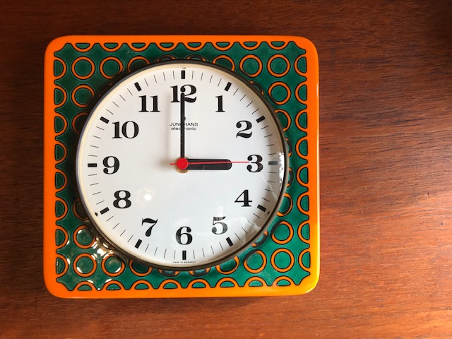 これも陶器なの?って思ってしまう鮮やかなカラー(≧▽≦) 入荷仕立てのドイツ製のビンテージ掛時計。