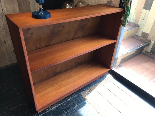 チーク材が使われているとてもシンプルなデザインのブックシェルフ。