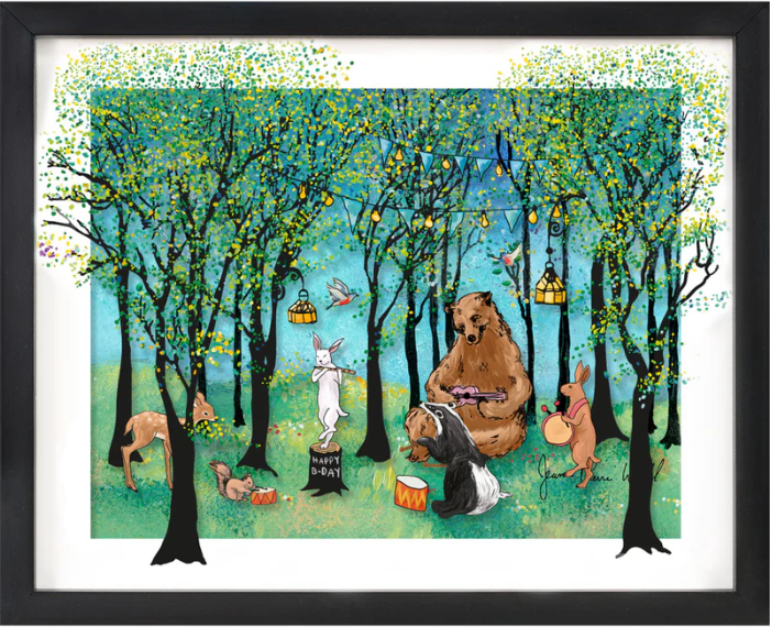 Lanterns hang from the trees, a bear strums a ukelele, and a rabbit dances with delight.