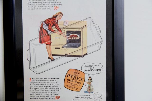 LIFE誌のヴィンテージ広告を額装したアートフレーム。PYREXが当時、結婚祝いのギフトのために出していた広告。