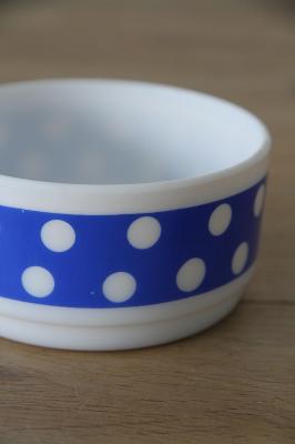 耐熱食器ミルクガラスで有名なフランスArcopal(アルコパル)のボウルです。レトロなドットプリントが可愛いです。