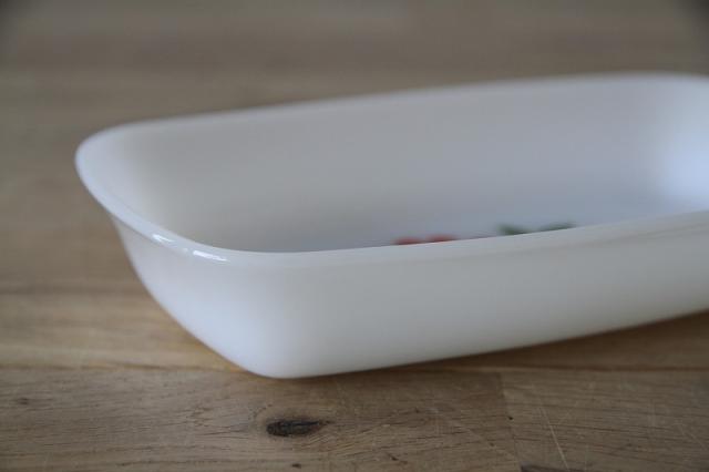 耐熱食器ミルクガラスで有名なフランスArcopal(アルコパル)の少し深さがあるお皿です。長方形型が良いです。フラワープリントがレトロで可愛い一点です。