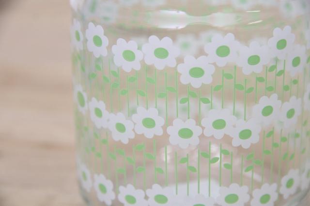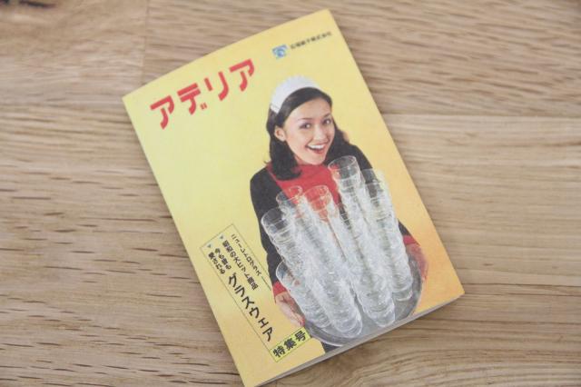 ストライプの花柄模様がかわいらしい“ラプソディー”は、昭和48(1973)年に発売された柄です。昭和当時は、グリーンの磨りガラス調の脚付きグラスにプリントされていたそうです。お行儀よく並んだお花たちがなんとも愛らしいですね。
