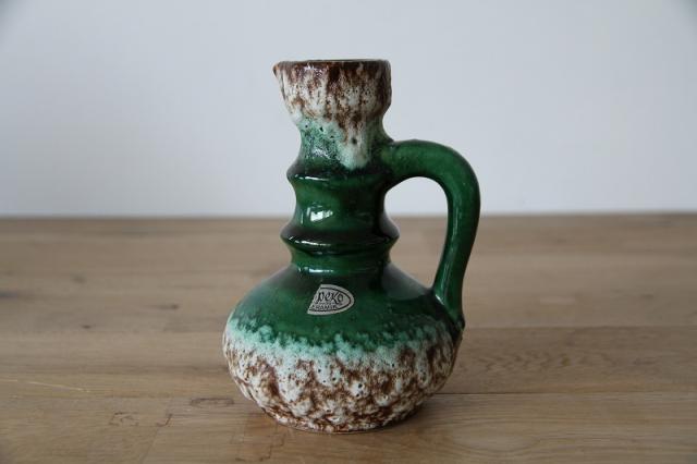 西ドイツにて製造されていた'Fat Lava'と呼ばれる陶磁器で、1848年創業と言われているJopeko社製のフラワーベース。軽石のように凹凸ある釉薬と艶感ある鮮やかな緑のバランスが素敵な一点です。