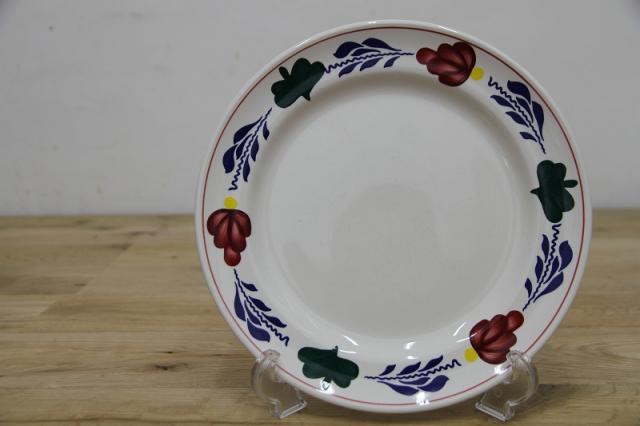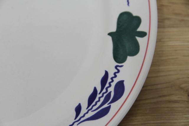 BOCH「Boerenbont」(製造年は1960年代から1980年代)シリーズのディナープレート。グリーン・ネイビー・バーガンディーの色で連なるようにボタニカルデザインがハンドペイントにて描かれている素敵な一点。とても状態が良いヴィンテージ品です。