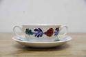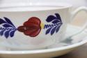 BOCH「Boerenbont」(製造年は1960年代から1980年代)シリーズのソーサー付きスープカップ。グリーン・ネイビー・バーガンディーの色で連なるようにボタニカルデザインがハンドペイントにて描かれている素敵な一点。とても状態が良いヴィンテージ品です。