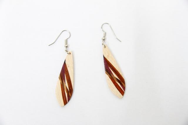 1979年創業アメリカのクラフトメーカー“davin&kesler”のピアス。木が本来持つ色や木目を生かした組木デザインは非常に細やかで、しなやかな曲線も大変美しいです。木目の落ち着いた雰囲気は、どんなテイストのファッションにも合わせやすそうです。