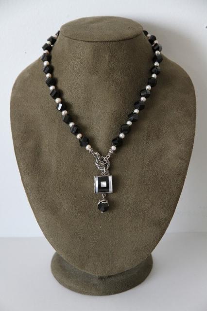 スターリングシルバー(シルバー925)にオニキスのビーズとパール、白蝶貝を象嵌したオニキスを組合わせたジュエリー。ブラック×ホワイトのコントラストが美しい天然素材の組み合わせ。唯一無二の特別感を味わえるGEM KINGDOMのネックレスです。
