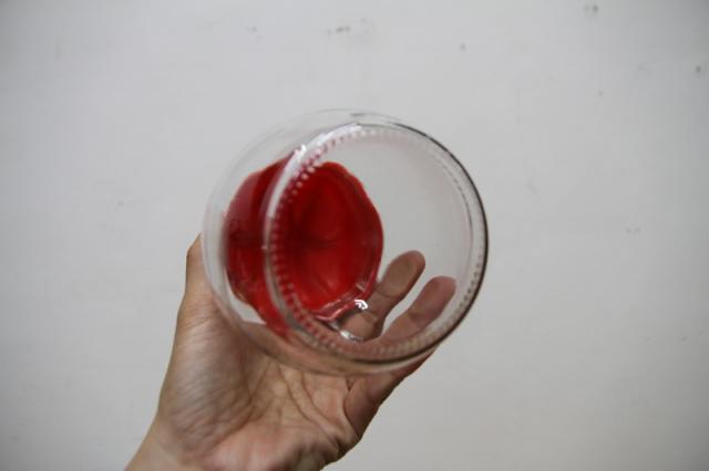ドイツから届いた可愛いキャニスター。ガラス瓶にプラスチック製のトマトの蓋というデザイン。レトロ感満載な入れ物です。