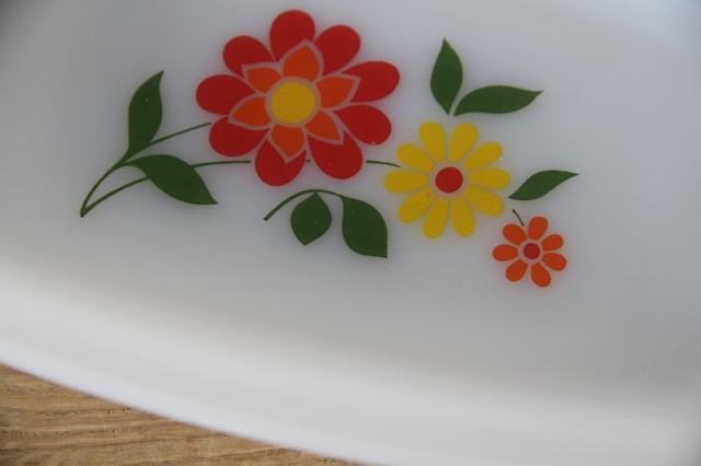 耐熱食器ミルクガラスで有名なフランスArcopal(アルコパル)の少し深さがあるお皿です。長方形型が良いです。フラワープリントがレトロで可愛い一点です。