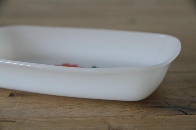 耐熱食器ミルクガラスで有名なフランスArcopal(アルコパル)の少し深さがあるお皿です。長方形型が良いです。フラワープリントがレトロで可愛い一点です。