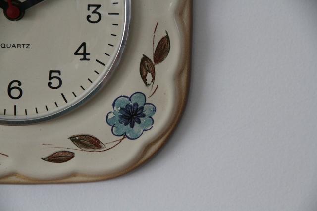 ドイツ製ヴィンテージの陶器製掛時計。ハンドペイントのフラワーモチーフの色使いがとっても素敵な一点。お部屋に優しい印象を与えてくれます♪