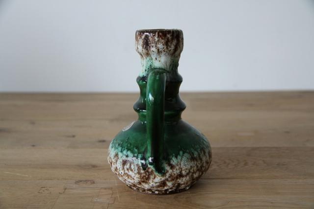 西ドイツにて製造されていた'Fat Lava'と呼ばれる陶磁器で、1848年創業と言われているJopeko社製のフラワーベース。軽石のように凹凸ある釉薬と艶感ある鮮やかな緑のバランスが素敵な一点です。