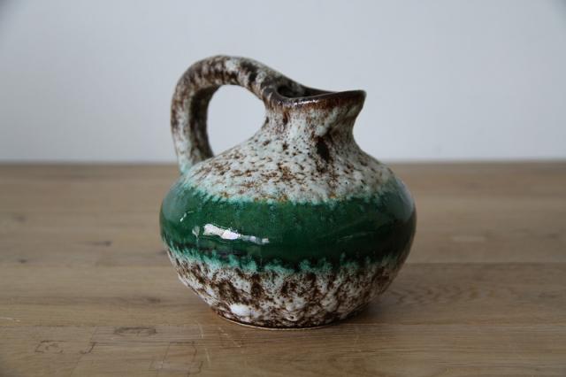西ドイツにて製造されていた'Fat Lava'と呼ばれる陶磁器で、1848年創業と言われているJopeko社製のフラワーベースです。軽石のように凹凸ある釉薬と艶感ある鮮やかな緑の色のバランスが素敵な一点です。
