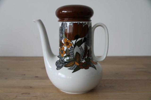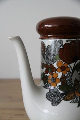 レトロなボタニカル柄がとても印象的なドイツ製thomasの"Kiruna"シリーズのコーヒーポット。Rorstrandで活躍したHertha Bengtsonによるデザインです。