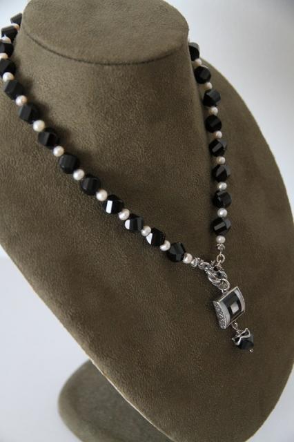 スターリングシルバー(シルバー925)にオニキスのビーズとパール、白蝶貝を象嵌したオニキスを組合わせたジュエリー。ブラック×ホワイトのコントラストが美しい天然素材の組み合わせ。唯一無二の特別感を味わえるGEM KINGDOMのネックレスです。