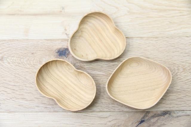 輪島から届いた、四十沢木材工芸のKITOシリーズ、豆皿ふたばです。職人が手作業で仕上げた木の表面はつるつるとしてたまらない肌触り。どれも高台はなく、ころんと手のひらに心地よく収まります。
