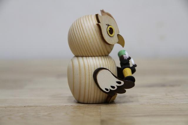 ドイツKuhnert社のフクロウの置物です。1986年にFrider Kuhnertが創業したKuhnert社はドイツ・エルツ地方の伝統工芸を大切にしつつ、現代的なデザインも積極的に取り入れながら木工の可能性に挑戦し続けているメーカーです。