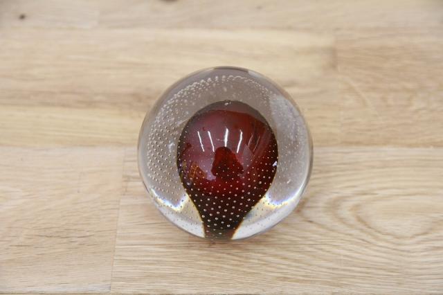 190年代製のMuranoGlassのペーパーウェイトです。真ん丸のクリアのガラスボウルの中に風船のように赤い色が。さらにガラスの塊の中には気泡を閉じ込められており大変な技術が詰まった逸品です。