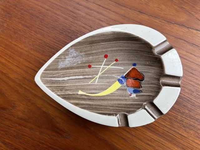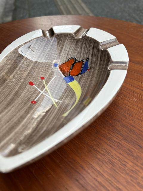 1950年代頃のヴィンテージ陶器製の灰皿です。裏にはMADE FOR LEEFSMAの刻印ありです。ミッドセンチュリー期の存在感あるデザインに惹かれます。お部屋のアクセントに。