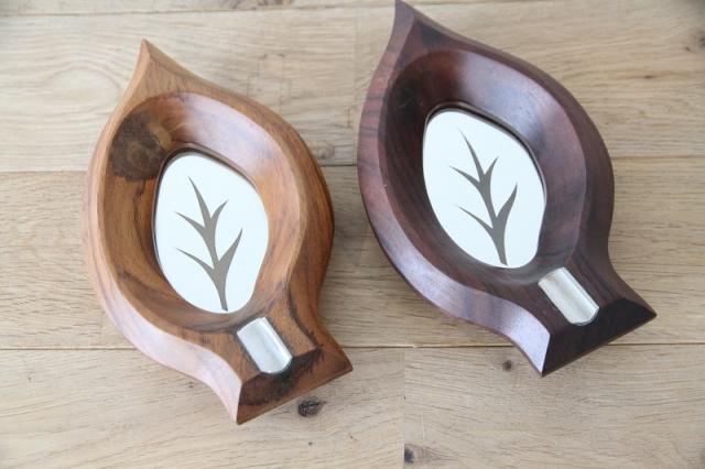 葉っぱデザインのヴィンテージ木製灰皿です。