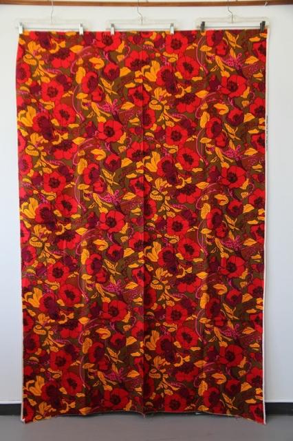 アメリカ買付便のヴィンテージファブリック。艶やかなフラワープリントがインパクトあります。とても貴重な大判サイズです。壁に掛けたり、ベッドカバーやソファーカバーにしたり気軽にインテリアに取り入れてみてください。