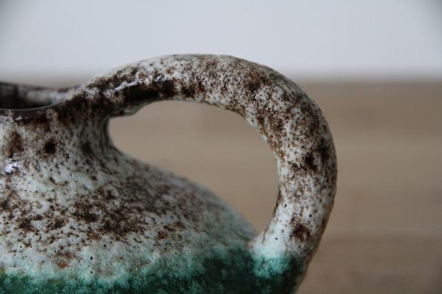 西ドイツにて製造されていた'Fat Lava'と呼ばれる陶磁器で、1848年創業と言われているJopeko社製のフラワーベースです。軽石のように凹凸ある釉薬と艶感ある鮮やかな緑の色のバランスが素敵な一点です。