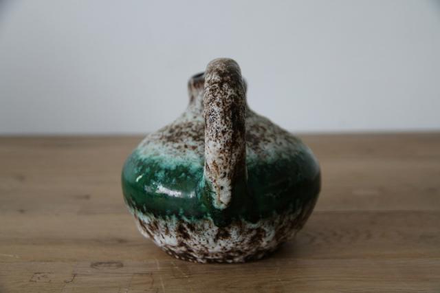 西ドイツにて製造されていた'Fat Lava'と呼ばれる陶磁器で、1848年創業と言われているJopeko社製のフラワーベースです。軽石のように凹凸ある釉薬と艶感ある鮮やかな緑の色のバランスが素敵な一点です。