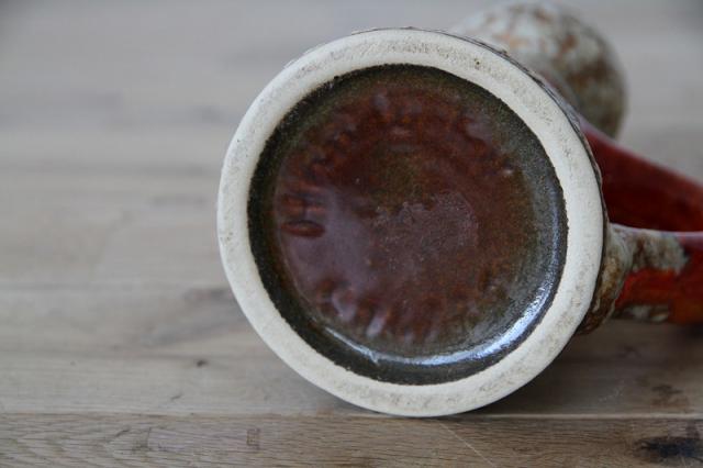 西ドイツにて製造されていた'Fat Lava'と呼ばれる陶磁器で、1848年創業と言われているJopeko社製のフラワーベース。軽石のように凹凸ある釉薬と艶感ある鮮やかなオレンジのバランスが素敵な一点です。