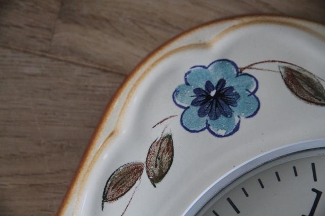 ドイツ製ヴィンテージの陶器製掛時計。ハンドペイントのフラワーモチーフの色使いがとっても素敵な一点。お部屋に優しい印象を与えてくれます♪