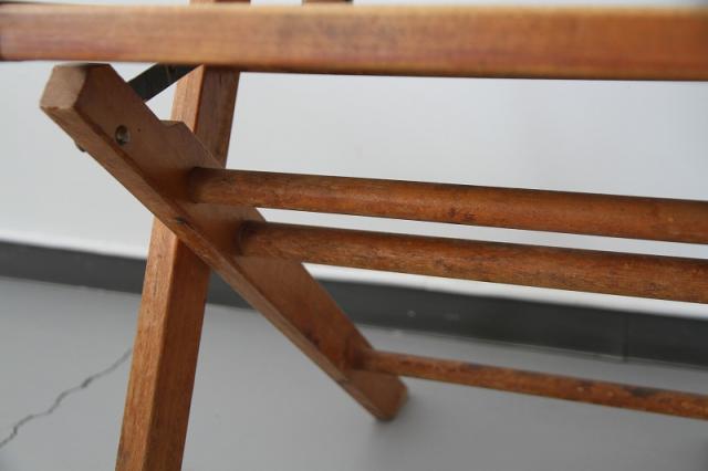 世界的なマットレスブランド、アメリカSIMMONS(シモンズ)の家具部門が1950-60年代に手掛けた木製の折り畳みチェア。学校や教会など公共の場で使用されることが多かったタイプの椅子のようです。