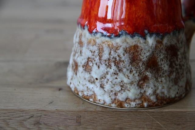 「Fat Lava」とは、1950~70年代に主に旧西ドイツで生産されていた陶磁器の一種。「肥えた溶岩」と直訳できるその意味のとおり、火山口から流れ出た溶岩を彷彿させる釉薬の色使いや仕上げ方が最大の魅力です。