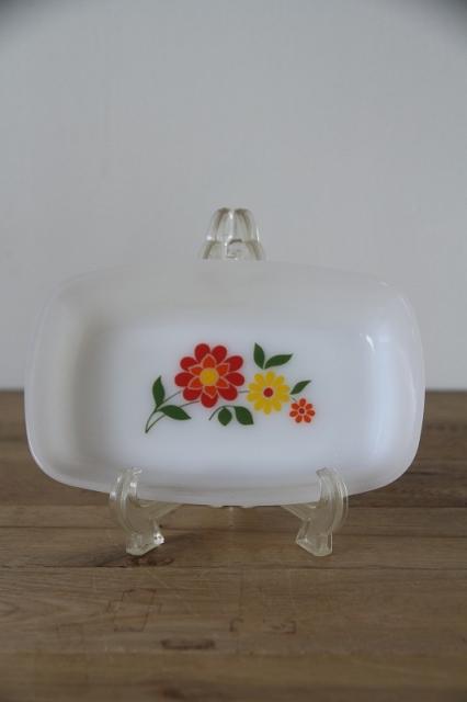 耐熱食器ミルクガラスで有名なフランスArcopal(アルコパル)の少し深さがあるお皿です。長方形型が良いです。フラワープリントがレトロで可愛い一点です。