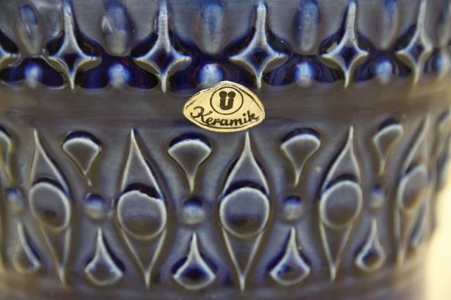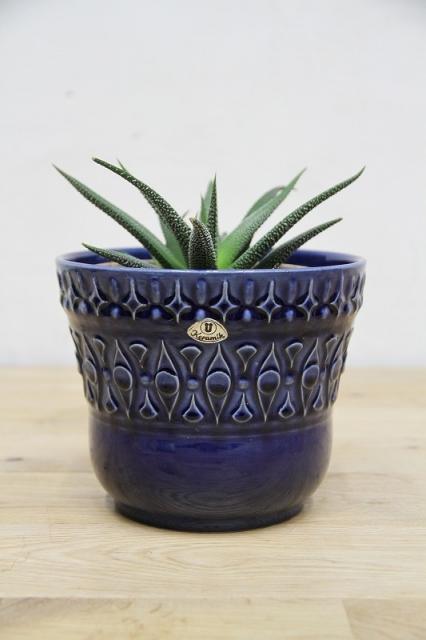 西ドイツU-Keramik社の陶器製フラワーポット。透き通るような青の色がとても美しいです。