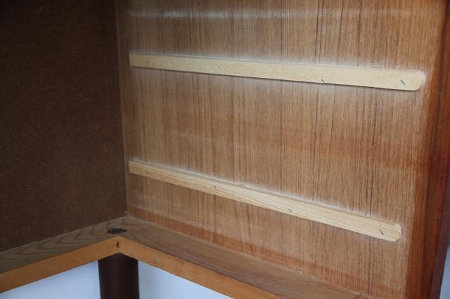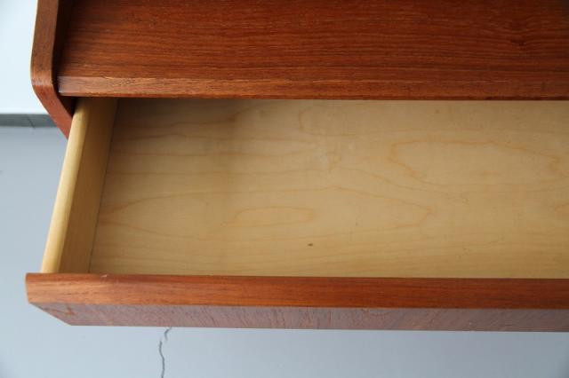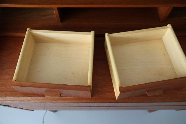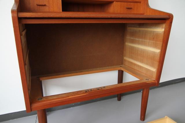 北欧デンマーク買付のライティングビューローです。ビューローとは、書棚や引き出しなどの収納家具とデスクが一体化した家具のことをいいます。これは天板を手前に引き出すことでデスクとして使用することが出来るタイプのデザインです。