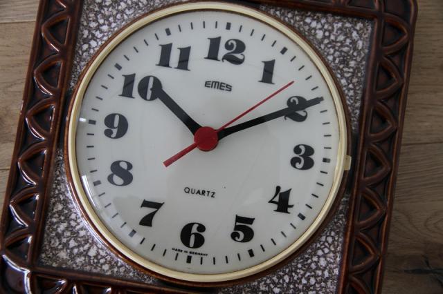 ドイツEMES社製の陶器製掛時計。1枚のタイルのような素敵なデザインです。大きくヒビが一本入っていますので詳細写真でお確かめください。