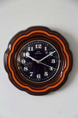 ドイツ製ヴィンテージの陶器製掛時計です。和のテイストにも合う渋さのあるデザインです。
