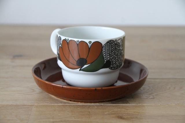 レトロなボタニカル柄がとても印象的なドイツ製thomasの"Kiruna"シリーズのカップ&ソーサー。Rorstrandで活躍したHertha Bengtsonによるデザインです。