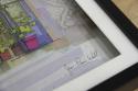 絵を施したガラスを何枚も重ね、光と影を融合した3Dアート。層を作ることで奥行きができ、外からの光によって薄っすらと影が浮かび上がります。細かな描写を、あらゆる角度から楽しめるのもこの作品の魅力。ずっと眺めていても飽きない面白さがあります。