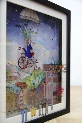 絵を施したガラスを何枚も重ね、光と影を融合した3Dアート。層を作ることで奥行きができ、外からの光によって薄っすらと影が浮かび上がります。細かな描写を、あらゆる角度から楽しめるのもこの作品の魅力。ずっと眺めていても飽きない面白さがあります。